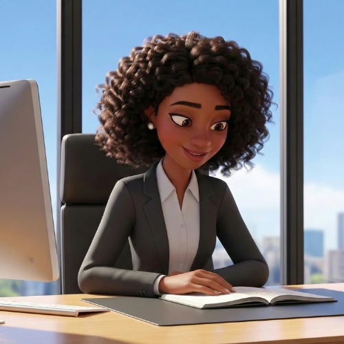 Animiertes Bild, Frau sitzt am Schreibtisch, Daten aus Personalstammblatt werden für digitale Personalakte extrahiert